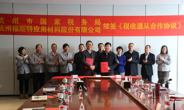 福斯特和杭州市國稅局成功續簽《稅收遵從合作協議》 [2017-11-22][2017-11-22]11月22日上午,福斯特和杭州市國家稅務局成功續簽《稅收遵從合作協議》。福斯特自2014年起與杭州市國稅局簽訂協議,是臨安首家稅收遵從合作單位。公司是區誠信納稅示范樣板企業,連續多年位列區國稅稅收貢獻排名第一位。[查看詳情]
