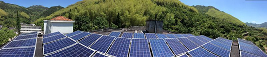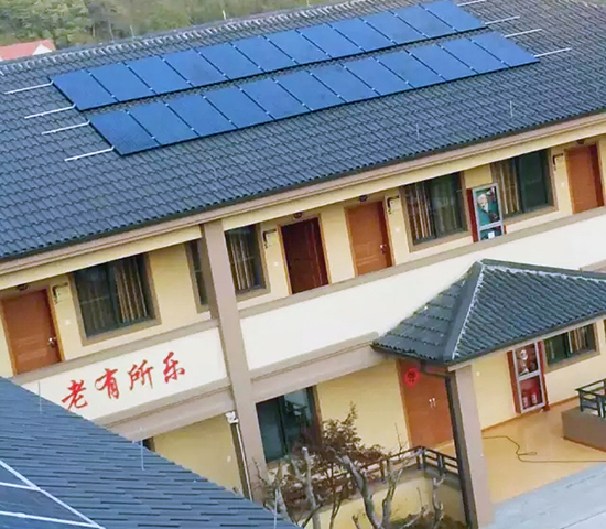 臨安板橋鎮敬老院背靠大山,周圍綠樹掩映,里面住著40多位老人。只見二層小樓的黑色瓦片屋頂上,分別整齊排列著兩排藍色太陽能板,在陽光的照射下分外好看。除此之外,位于太陽鎮、龍崗鎮、清涼峰的三家敬老院的光伏發電系統也已安裝完成,其中板橋鎮、太陽鎮已并網成功。每家敬老院的光伏發電系統的裝機容量均為10千瓦,今后將每年發電1萬度左右,基本可以解決敬老院一年的用電問題。福斯特公司捐贈了四家臨安敬老院的全部光伏發電系統,并委托協會會員單位杭州歐帆能源科技有限公司建設實施。