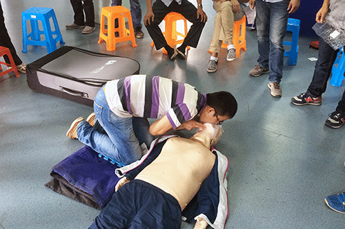 培訓(xùn)特別強調(diào)當意外發(fā)生時,有效的搶救時間只有4-6分鐘,所謂“救命的黃金時刻”。因此,災(zāi)難、事故發(fā)生時“第一目擊者”具有現(xiàn)場救護技能,對傷員采取現(xiàn)場緊急救護措施,將大大提高搶救的成功率。