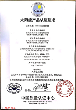 福斯特光伏組件封裝用背板(BEC-301)中國質(zhì)量認(rèn)證中心(CQC)認(rèn)證證書