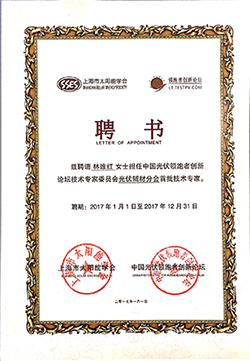 福斯特CTO周光大博士、高級研發(fā)工程師林維紅博士獲聘為中國光伏領(lǐng)跑者創(chuàng)新論壇技術(shù)專家委員會光伏輔材分會首批技術(shù)專家。