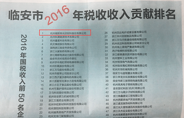 2016年,全市上下“干”字當(dāng)頭、砥礪奮進(jìn)。在市工信經(jīng)濟(jì)良好發(fā)展的環(huán)境下,福斯特企業(yè)整體實力實現(xiàn)了穩(wěn)步提升。公司主導(dǎo)產(chǎn)品EVA膠膜持續(xù)保持全球市場50%的占有率,產(chǎn)品與國內(nèi)同行相比,具備先發(fā)優(yōu)勢、質(zhì)量優(yōu)勢、技術(shù)優(yōu)勢和品牌優(yōu)勢;與國外同行相比,具備本土化優(yōu)勢和規(guī)?;瘍?yōu)勢。
