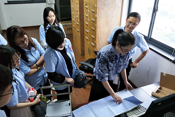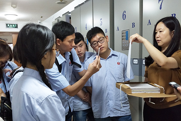 檔案員們在工作人員陪同下參觀了杭州市檔案館展廳。一樓展廳主題為“千年天堂路——杭州歷史文化圖片展》,各展區通過文字、圖表、照片和實物等相結合的形式,以歷史時空為順序,以杭州市城市變遷為主線,系統簡要地介紹了杭州七千年的歷史,反映了杭州城市的起源、發展和變遷的古都文化、城市文化和西湖文化。之后赴二樓參觀查閱室,各兼職檔案員親身翻閱各索引目錄,了解檔案日常借閱的一般程序。在檔案館專家帶領下實地查看檔案庫房,對整齊的密集架及檔案整齊的排序表示贊嘆。在庫房里兼職檔案員們了解了庫房安全管理、全宗存放索引、消防、監控措施、溫濕度記錄、信息安全管理制度,意識到了檔案的保密性。并就日常檔案工作中出現的問題與檔案館專家進行了現場咨詢與討論。重點聽取了檔案整理難點—按件整理與按卷整理的區別、檔號的編制等。