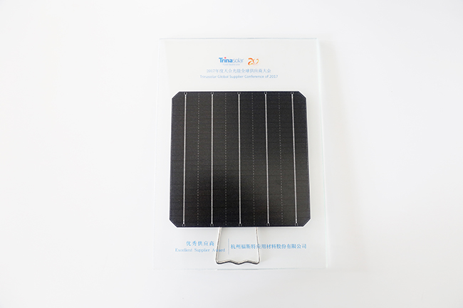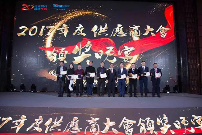 會中,公司榮獲2017年度天合光能優秀供應商獎。福斯特始終堅持“客戶第一”的宗旨,多年來為行業提供高品質的光伏封裝材料并得到了客戶的充分認可。契合了天合成就客戶、開放心胸、全力以赴、追求卓越的企業文化。