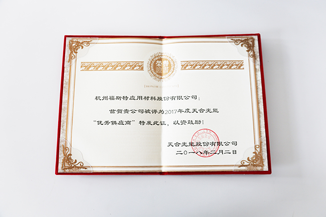 福斯特榮獲2017年度天合光能優秀供應商